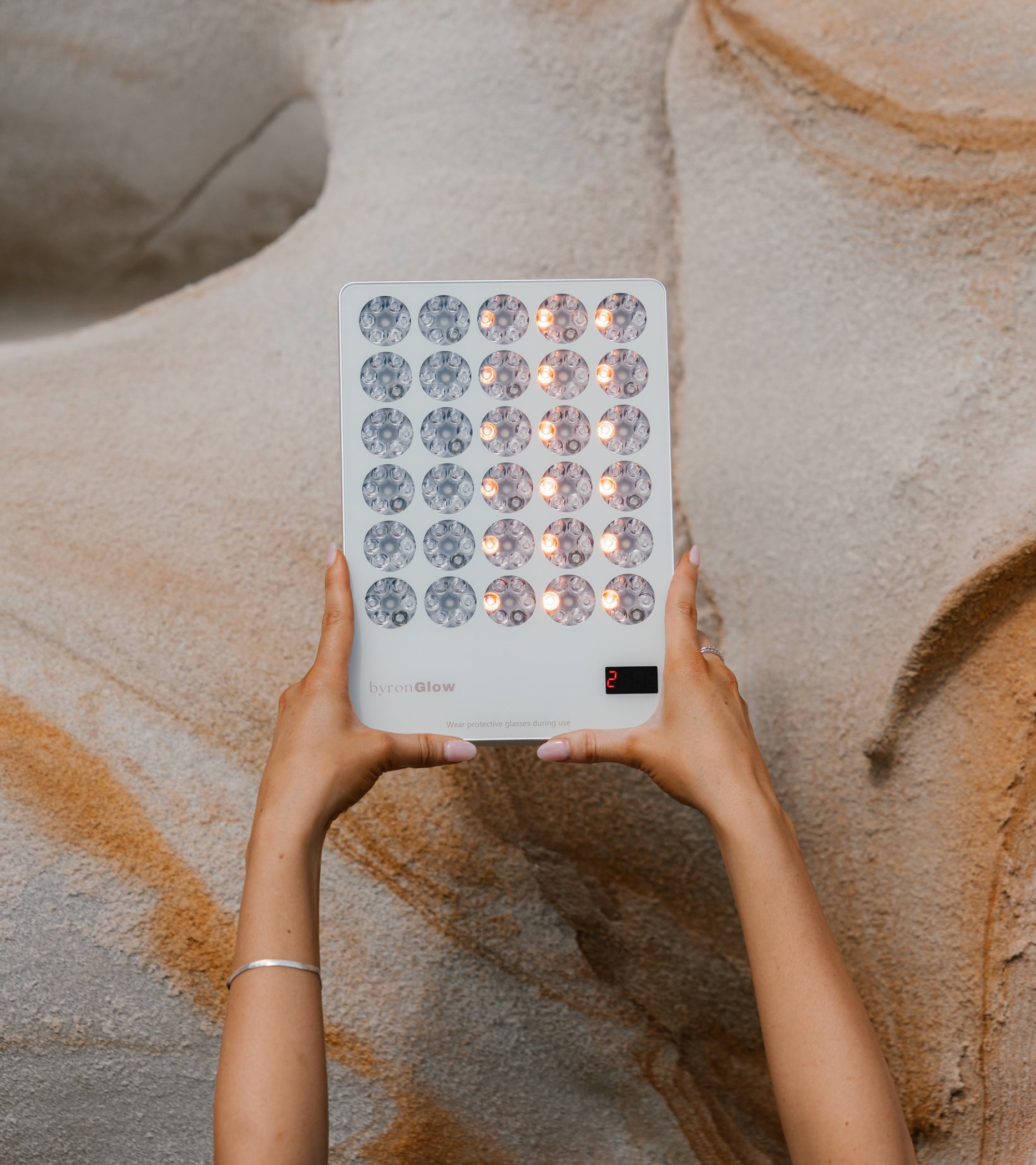 The ByronGlow Wireless LED Device is a portable, non-invasive light therapy device designed to deliver specific wavelengths of light that may support the body’s natural skin functions.